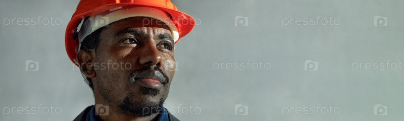 Молодой взрослый чернокожий мужчина, носящий жесткую шляпу и оглядывающийся в сторону на строительной площадке