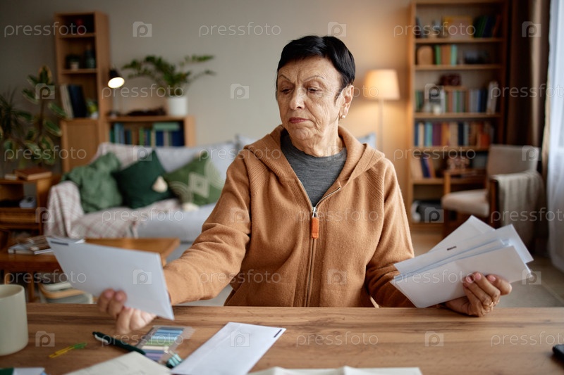Женщина, просматривающая счета и фактуры на столе домашнего офиса