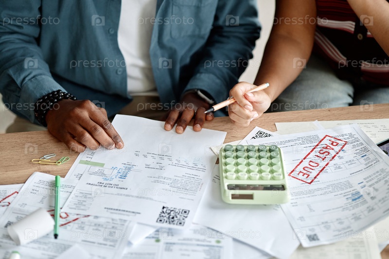 Молодая многонациональная команда, анализирующая счета и фактуры вместе за рабочим столом
