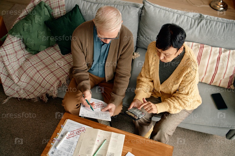 Старший мужчина и старшая азиатская женщина вместе анализируют счета по дому