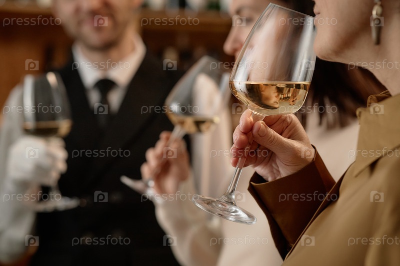 Группа взрослых людей среднего возраста, дегустирующих вино во время тестирования вина