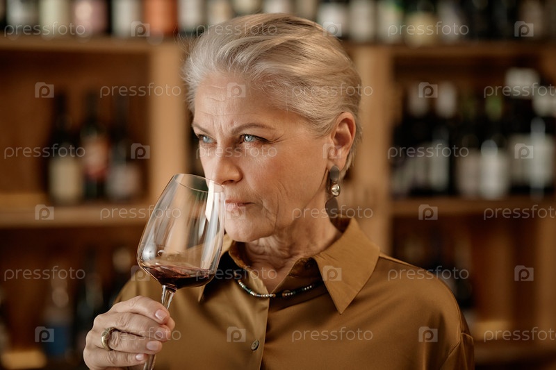 Женщина, нюхающая красное вино во время тестирования напитка в винном заводе