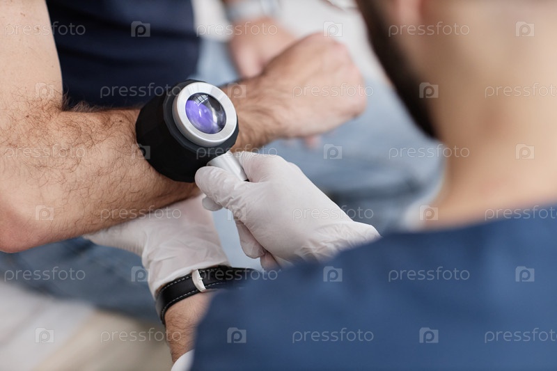 Мужчина среднего возраста проходит осмотр кожи дерматологом