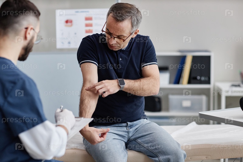 Мужчина среднего возраста консультируется с дерматологом о состоянии кожи