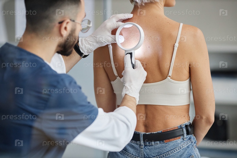 Женщина среднего возраста, проходящая обследование кожи дерматологом