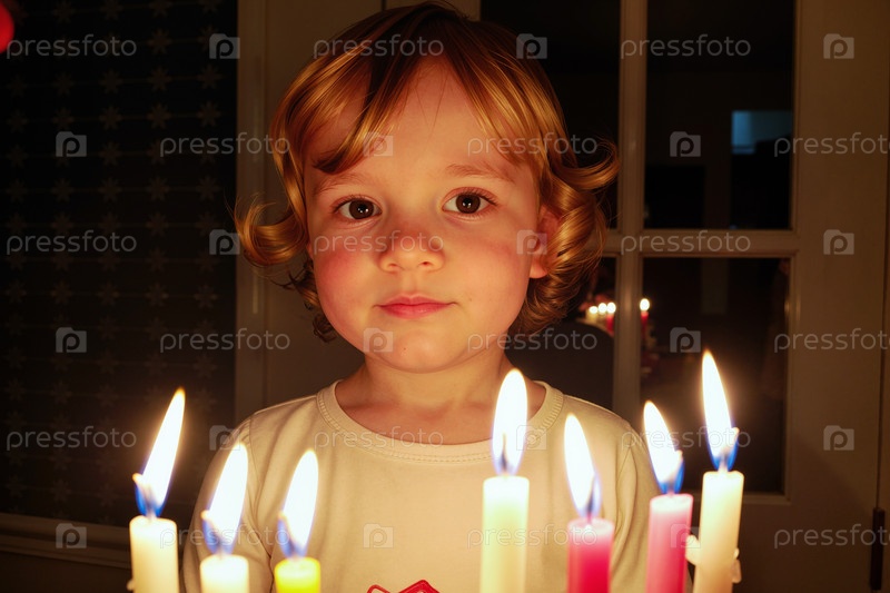 Портрет ребенка, глядящего на пламя свечи во время праздничного торжества