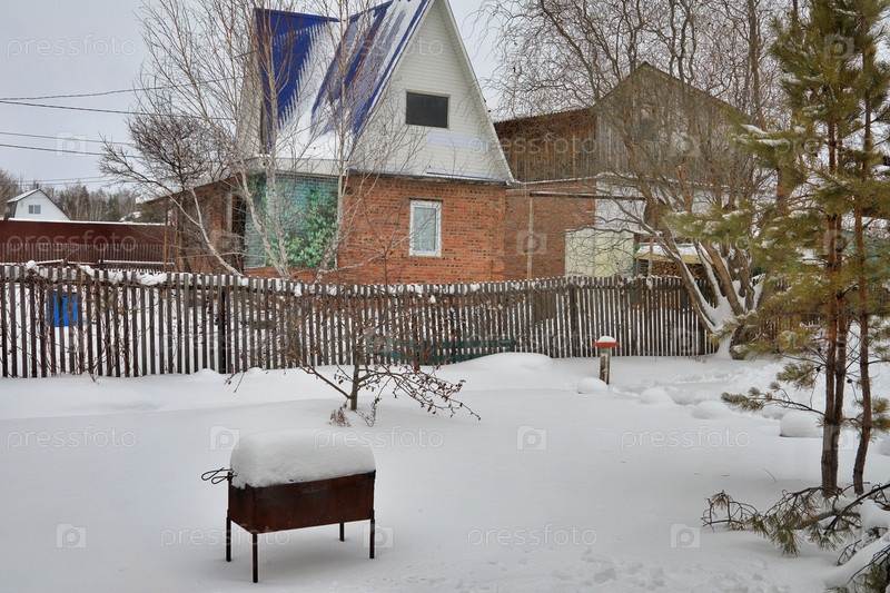 Вид на летний коттедж зимой