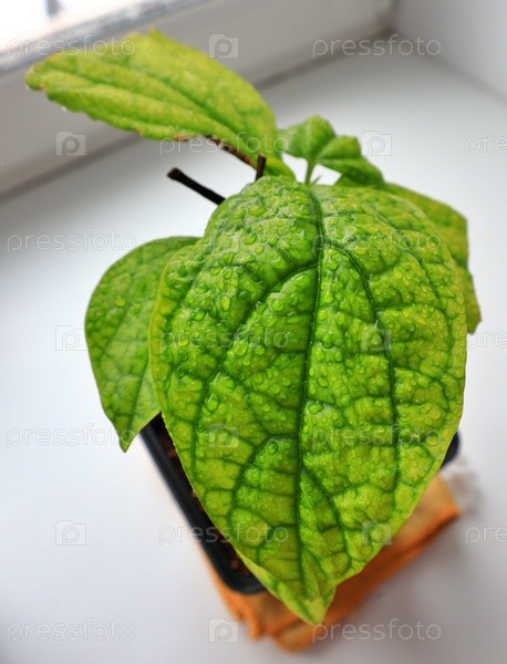Поместное растение colerodendrum с каплями воды после полива