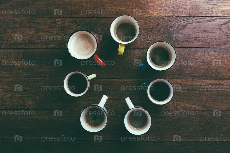 Кофейные кружки на деревянном фоне
