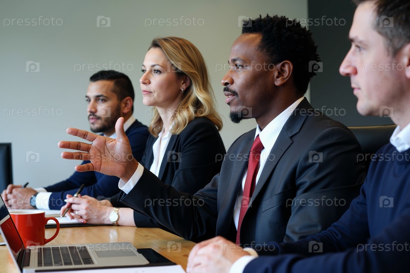 Мультиэтническая группа молодых профессионалов, обсуждающих бизнес-стратегию