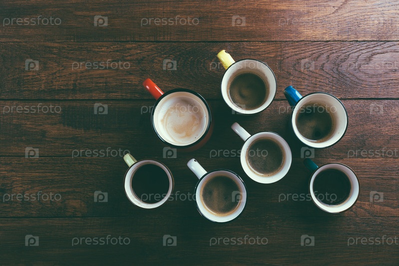 Кофейные кружки на деревянном фоне