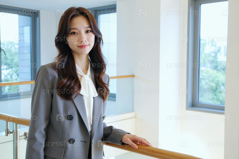 Портрет молодой взрослой азиатской женщины, улыбающейся уверенно в помещении