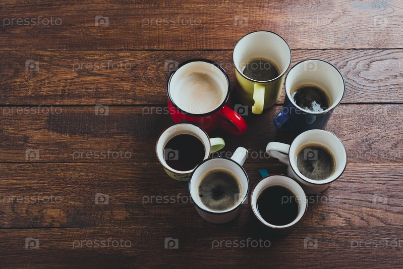 Кофейные кружки на деревянном фоне