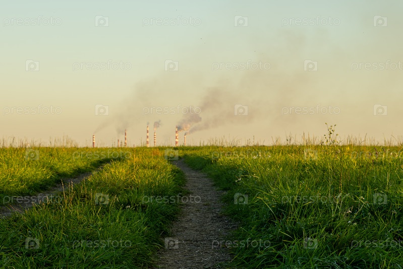 Промышленное загрязнение от заводских дымоходов в сельской местности