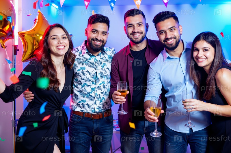 Группа молодых взрослых мультиэтнических друзей, празднующих вместе на вечеринке