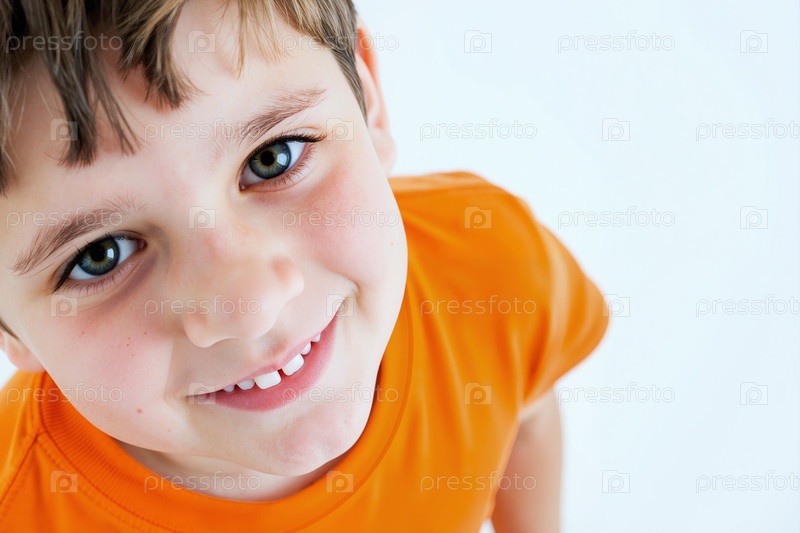 Портрет мальчика, улыбающегося и смотрящего в камеру на заднем плане