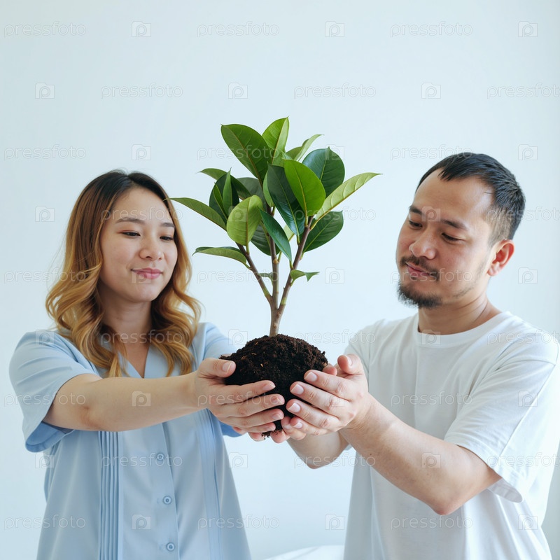 Молодая азиатская пара совместно владеет заводом, продвигая экологическую осведомленность