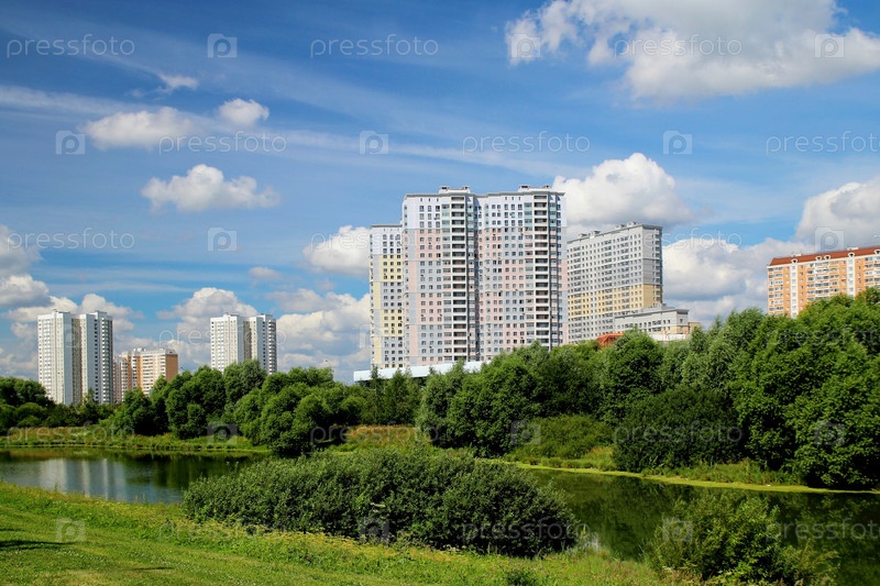Городской пейзаж с озером