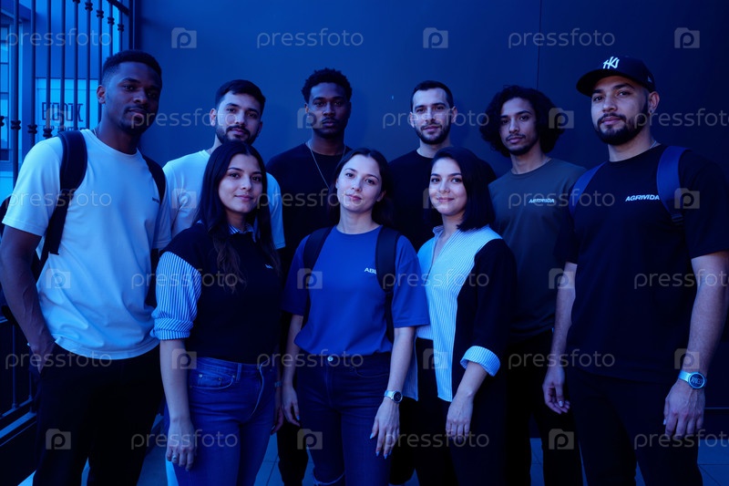 Мультиэтническая группа молодых взрослых, стоящих вместе и выглядящих уверенно