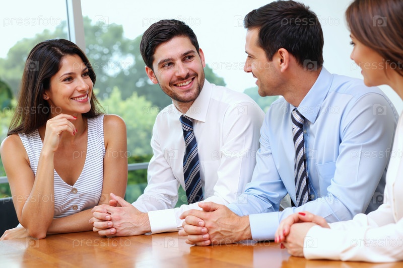 Группа молодых профессионалов-взрослых, которые проводят деловые встречи в помещении