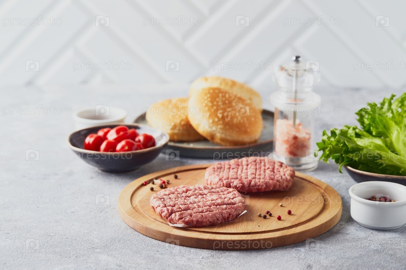 Сырые телячьи измельченные бургеры стейк котлеты на деревянной доске