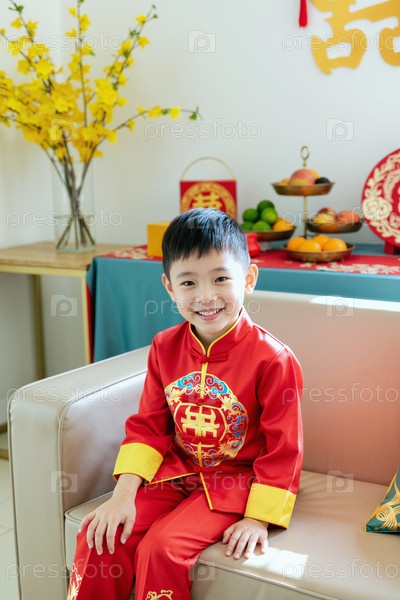 Портрет азиатского мальчика-ребенка, улыбающегося во время празднования