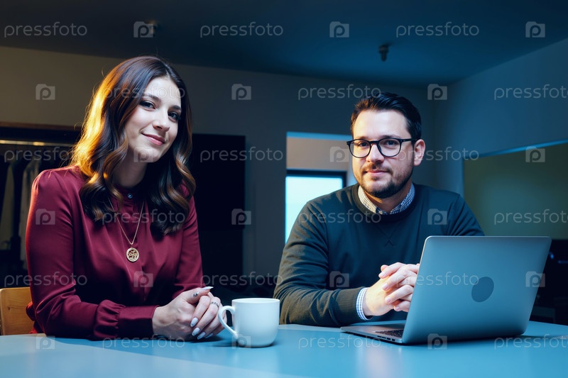 Молодая женщина и молодой человек сотрудничают в современном офисе