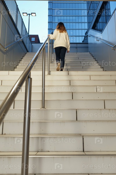 Молодая женщина ходит наверх в городской наружной обстановке