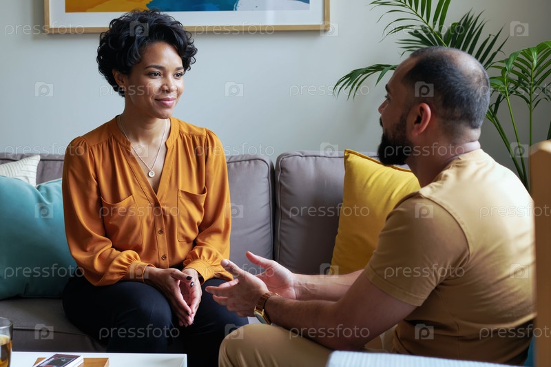 Юная чернокожая женщина внимательно слушает мужчину средних лет