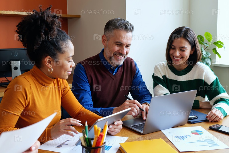 Мультиэтнические молодые и средних коллеги, сотрудничающие в офисе