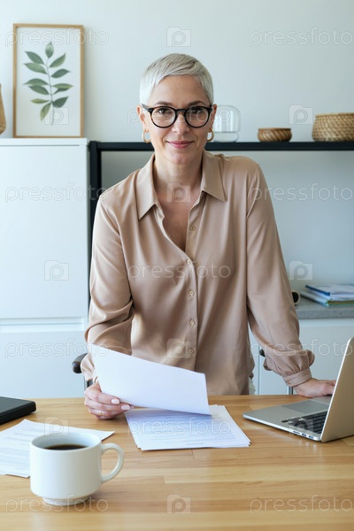 Портрет взрослой женщины, работающей с документами в офисе