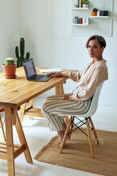 Портрет молодой женщины, работающей на ноутбуке в офисе