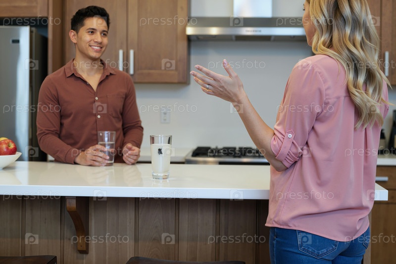 Молодая женщина объясняет медицинское обслуживание улыбающемуся молодому латиноамериканцу