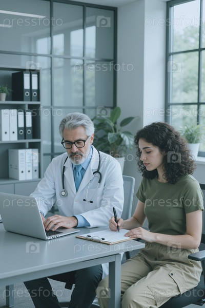 Мужчина Взрослый Доктор Консультации Молодая Женщина Пациент
