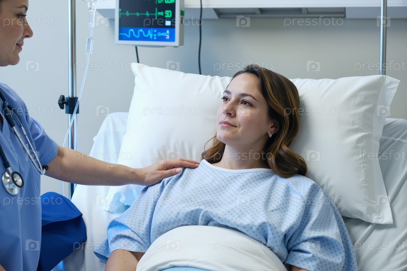 Молодая женщина получает медицинскую помощь от медсестры в больнице