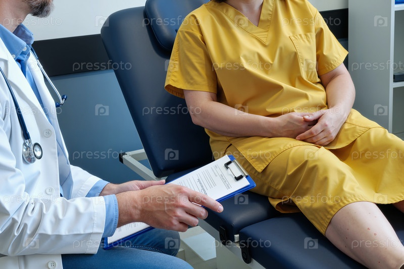 Взрослая женщина консультирует врача во время медицинского осмотра