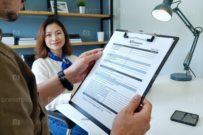 Молодая женщина улыбается во время собеседования с мужчиной-рекрутером