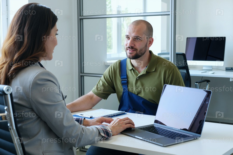 Молодой взрослый человек обсуждает проект с молодой взрослой женщиной