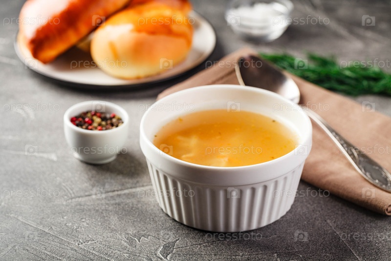 Обеденный стол с тарелкой супа из лапши и соленых пирогов, наборы меню для здорового обеда в ресторане, деловой ланч