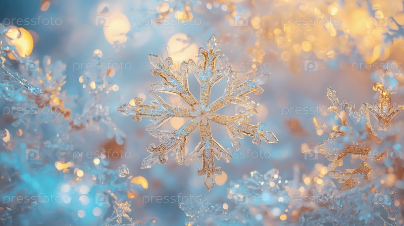 Баннер. кристаллическая ледяная снежинка на заснеженном фоне. символ 2026 года. С Новым годом и Рождеством