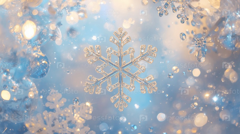 Баннер. кристаллическая ледяная снежинка на заснеженном фоне. символ 2026 года. С Новым годом и Рождеством