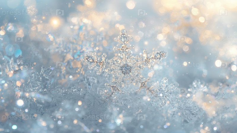 Баннер. кристаллическая ледяная снежинка на заснеженном фоне. символ 2026 года. С Новым годом и Рождеством