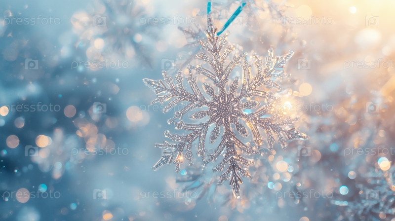 Баннер. кристаллическая ледяная снежинка на заснеженном фоне. символ 2026 года. С Новым годом и Рождеством