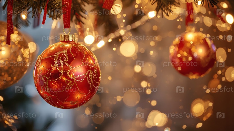 Прекрасный рождественский фон, баннер из стеклянных рождественских шаров