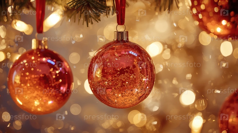 Прекрасный рождественский фон, баннер из стеклянных рождественских шаров