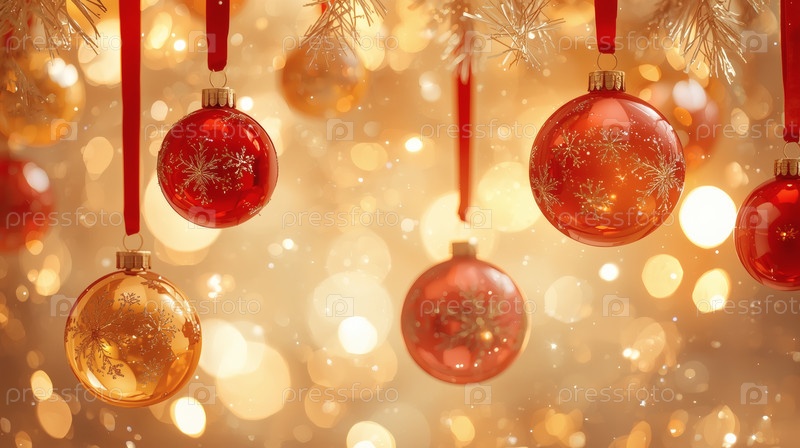 Прекрасный рождественский фон, баннер из стеклянных рождественских шаров