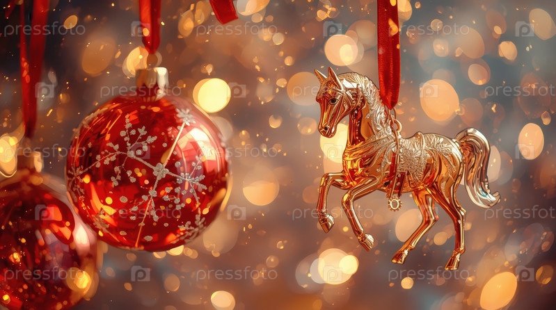 Прекрасный рождественский фон, баннер из висящего стекла Рождественские шары и коневые подвески