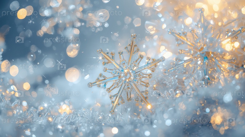 Снежинка. Banner. A crystal, ice snowflake on a snowy background. The symbol of 2026. Happy New Year and Merry Christmas