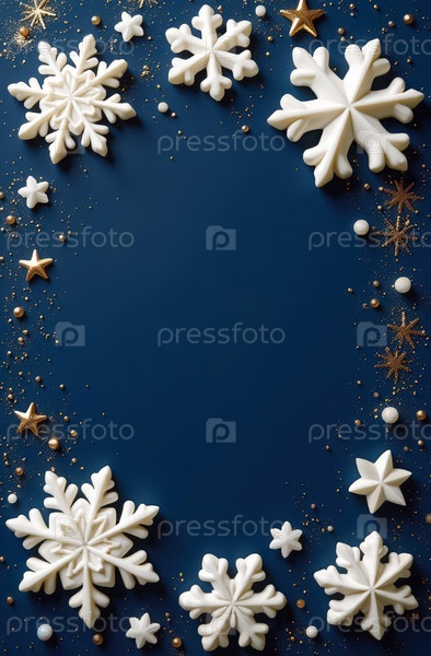 Белый шоколад в виде снежинки на синем фоне с пространством для текста