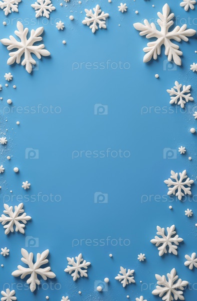 Белый шоколад в виде снежинки на синем фоне с пространством для текста